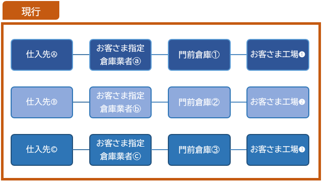 お客さまの工場ごとに最適な物流を構築済み。