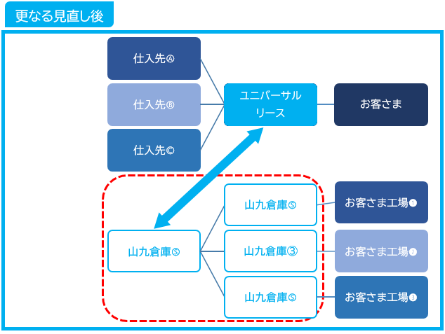 見直しに合わせて、ユニバーサルリースを商流に加えることにより、以下のメリット等の享受も実現可能に。