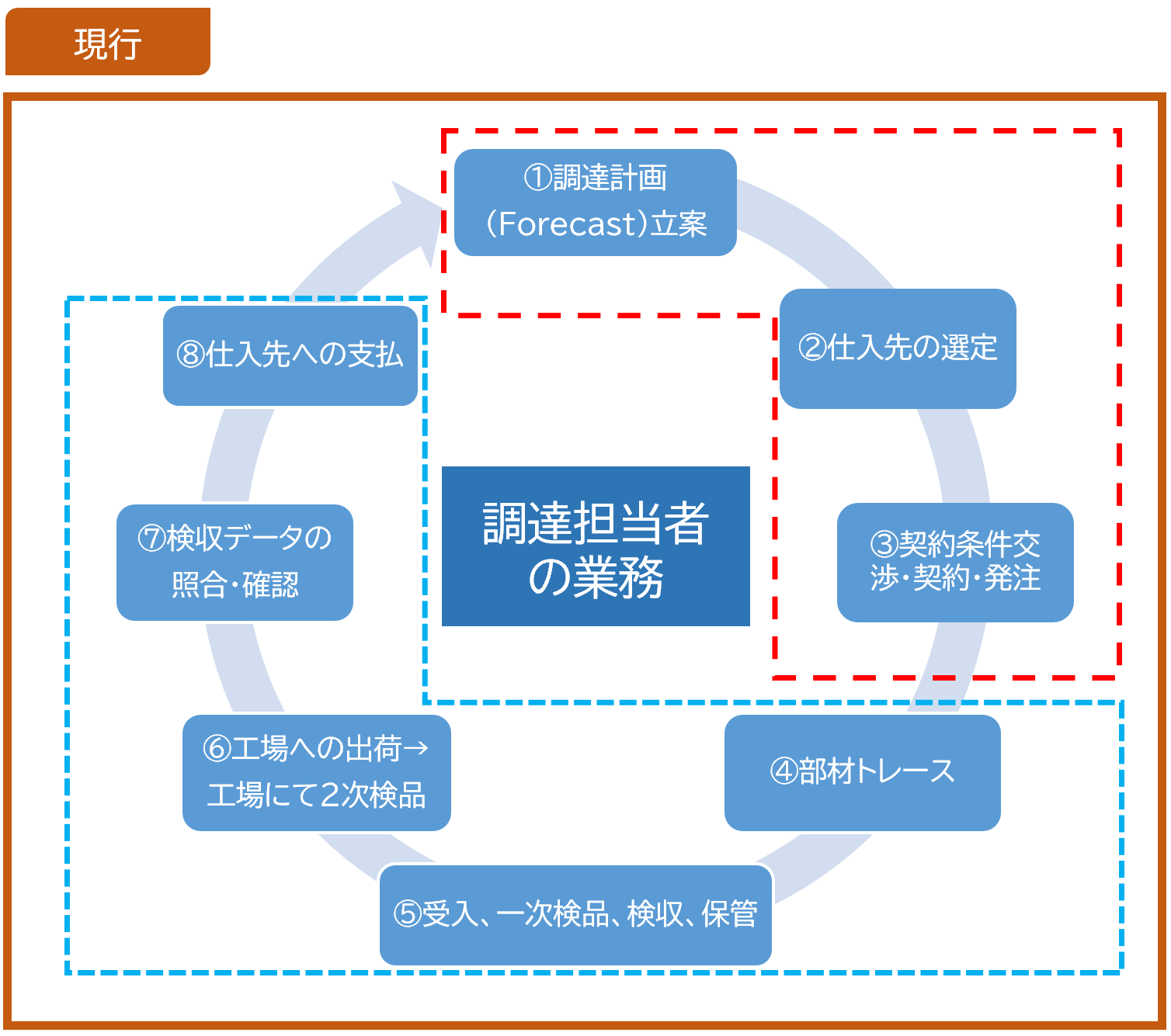 調達担当者としての主要業務は①~③であるが、④~⑧の業務負担は決して軽くない。